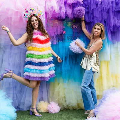 Vintage influences are artfully woven throughout the collection with gathered tulle sleeves, collars, culottes, beaded tulle leggings and sweet chokers adding whimsy and intrigue. The introduction of luxe silk velvet tailored capes, beaded carousel ponies, earthy hues and playful prints are sure to please the most discerning crowd!
