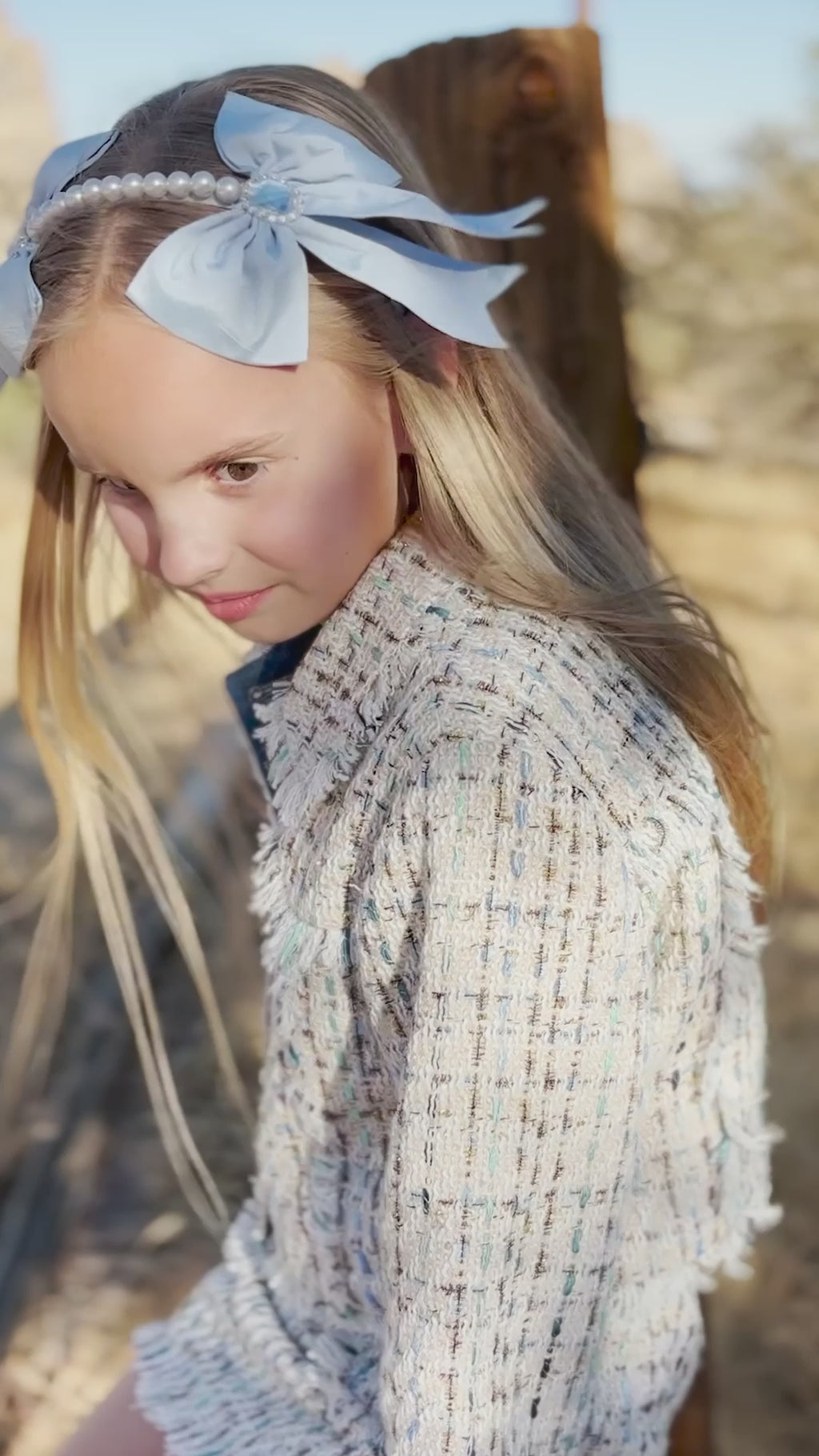 A fresh take on a classic silhouette, The Texas Hold'em Skirt in Beige brings charm and comfort together. Made from a soft bouclé fabric woven with subtle lurex yarns, it has a gentle shimmer that catches the light just right. The contrast denim waistband adds a cool touch, while the frayed hem and pocket details give it an easygoing feel.