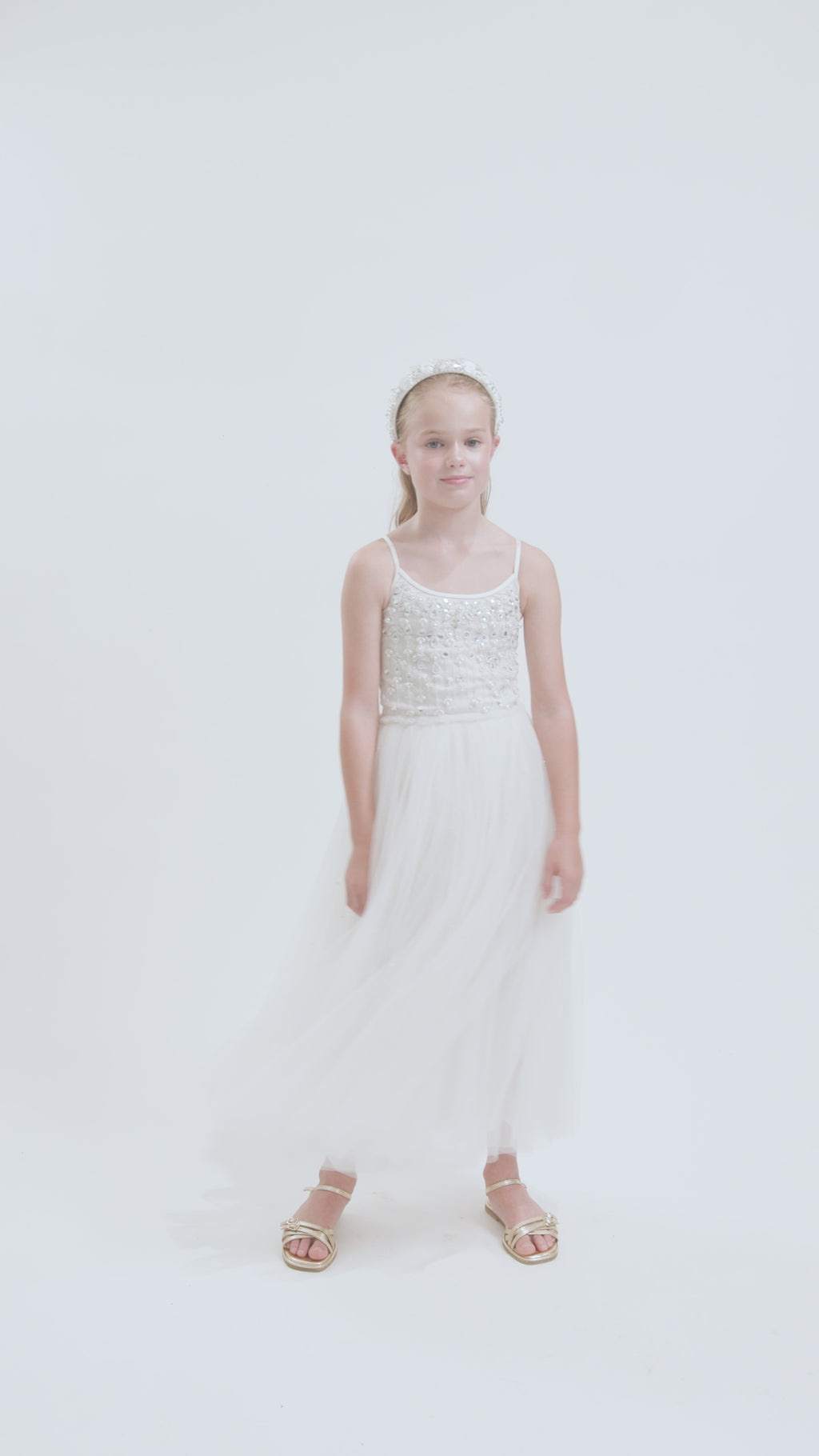 Let the sea speak through you in the Whispers of the Deep Tutu Dress in Milk. With a flowing skirt of weightless tulle, this gown glides like waves under a silver moon. Across the bodice, a delicate constellation of beads and sequins shimmers like sunken treasure—each one whispering stories of the deep. Hauntingly beautiful and endlessly enchanting, this dress is a tribute to ocean goddesses and the secrets they keep.